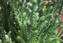 筒叶花月,是景天科青锁龙属的多年生草本植物。植株多分株,灌木状,茎较粗壮,圆柱形,表皮灰褐色;叶片肉质,互生,呈圆筒状,簇生于茎或分枝顶端,叶端呈斜截形,截面为椭圆形;花呈星状,淡白色;花期秋季。…全部>>