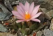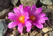 龟甲牡丹为仙人掌科岩牡丹属多年生草本植物,植物矮小,单生或丛生。 为岩牡丹的同属常见种,球体灰绿色,疣状突起呈阔三角形,其表面有纵横交错的龟裂纹,形似“龟甲”,故称龟甲牡丹。球顶端中央开花,花粉红色,…全部>>