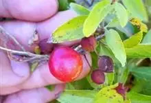 欧李,蔷薇科李属落叶灌木植物,高1.5米。树皮灰褐色,小枝被柔毛;叶互生长圆形或椭圆状披针形;花与叶同时开放,单生或并生,花瓣白色或粉红色;核果近球形,熟时鲜红色或橘黄色。花期4-5月,果期5-6月。…全部>>