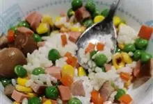 什锦炒饭是一道色香味俱全的名点,以江苏扬州的炒饭最知名。虾仁去泥肠洗净,加料酒、胡椒粉、淀粉上浆。胡萝卜洗净,切小片。蘑菇洗净、切块。将虾仁、豌豆粒、蘑菇倒入沸水锅中,焯烫至断生,捞出沥水。…全部>>