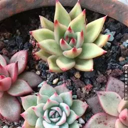 女雏是景天科石莲花属的多肉植物。特征是小巧的株形和橙粉色叶缘。极易生侧芽,…