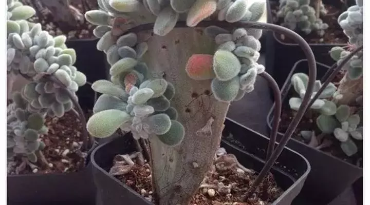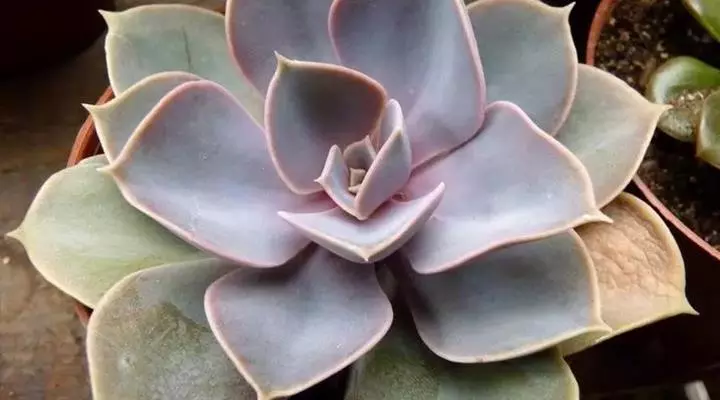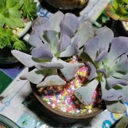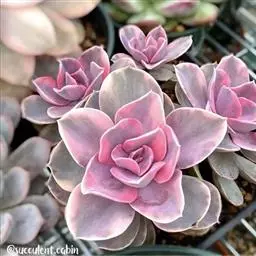 紫珍珠是景天科石莲花属的多年生肉质草本植物。植株中小型;叶片肉质,匙形,呈莲座状紧密排列;叶片粉紫色,…