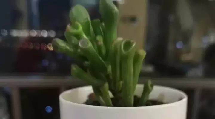 绿玉菊为菊科千里光属多年生肉质植物。植株匍匐或悬垂、向上攀援生长,茎圆柱形,红褐色,叶互生,具叶柄,…